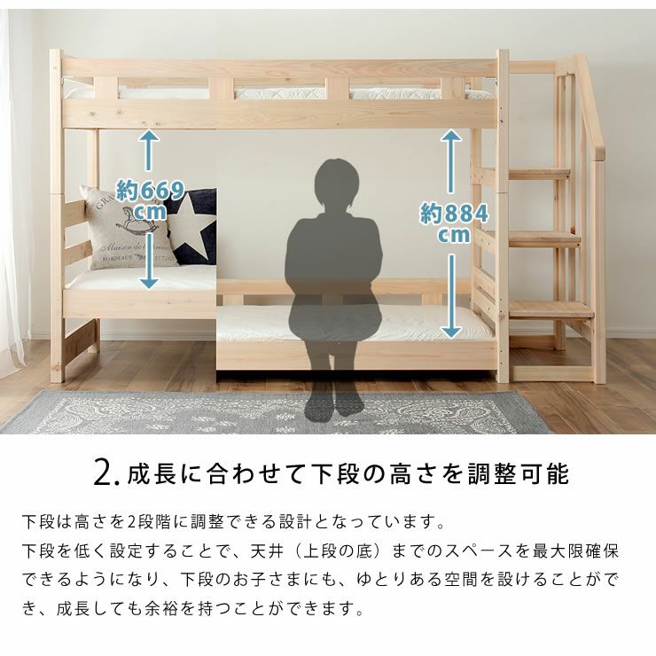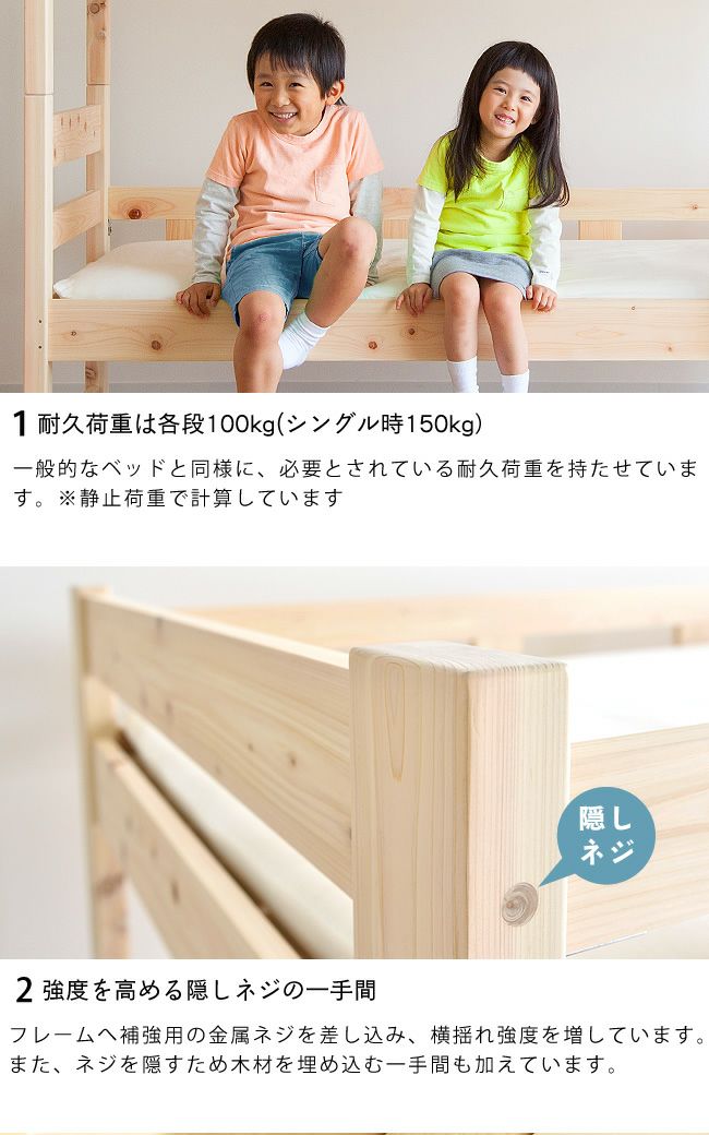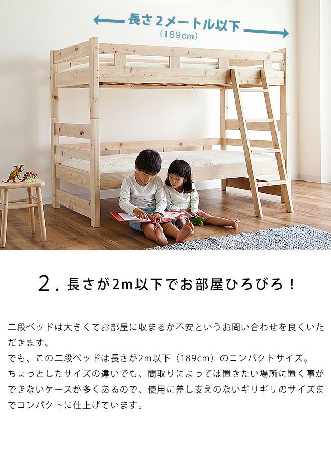 国産のひのき無垢材を使用した、ランキング1位の大人気おすすめオリジナル二段ベッドです。