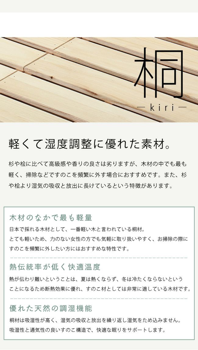 ひのき無垢材の心地良い香りが、まるで森林浴をしているような気分にさせてくれます。スマホが立てられる溝付棚と2口コンセント付なので、布団の中でも快適に過ごせます。