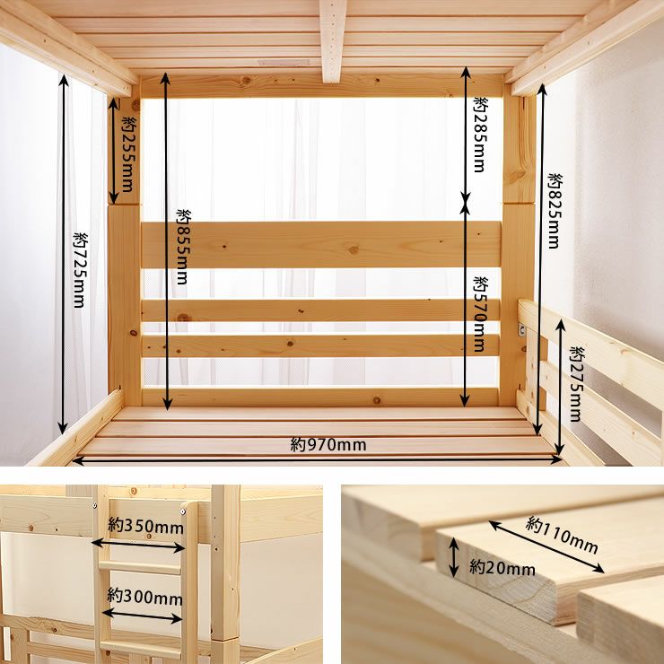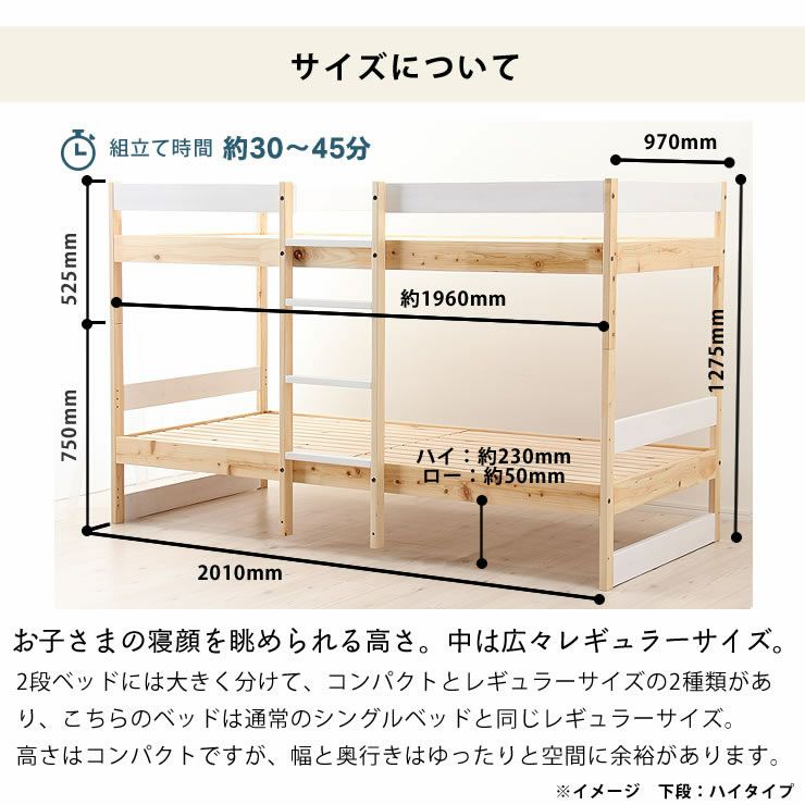小さすぎずほどよい大きさの二段ベッドをお探しのお客様へご案内している商品です。