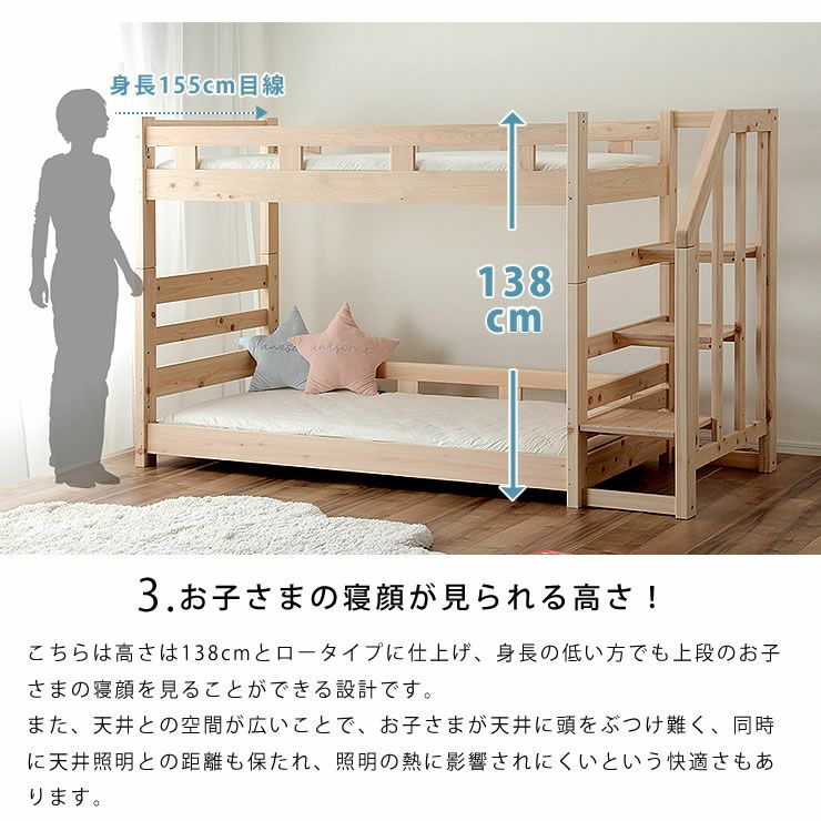 ワイドサイズでゆったり過ごす大人サイズの二段ベッド。すのこベッドと変わらない内寸に加え、強度もしっかり保つデザイン設計でお子さまの添い寝も実現。ご家族の生活環境の変化やお子さまの成長に順応できるベッドとしておすすめです!