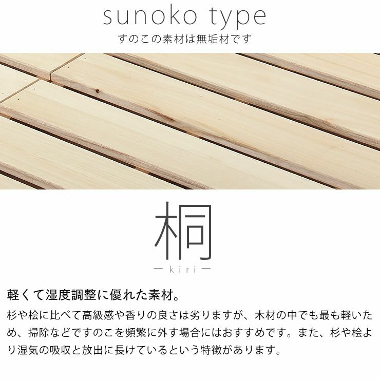 | 材質 | フレーム:国産ひのき無垢材(九州産) すのこ:桐無垢材・杉無垢材・桧無垢材 |
