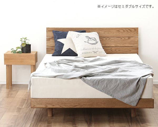 木目の美しいオーク無垢材を使用したシンプルなデザインの国産すのこベッド。背もたれに施されたアール加工がデザインのアクセントになっています。
