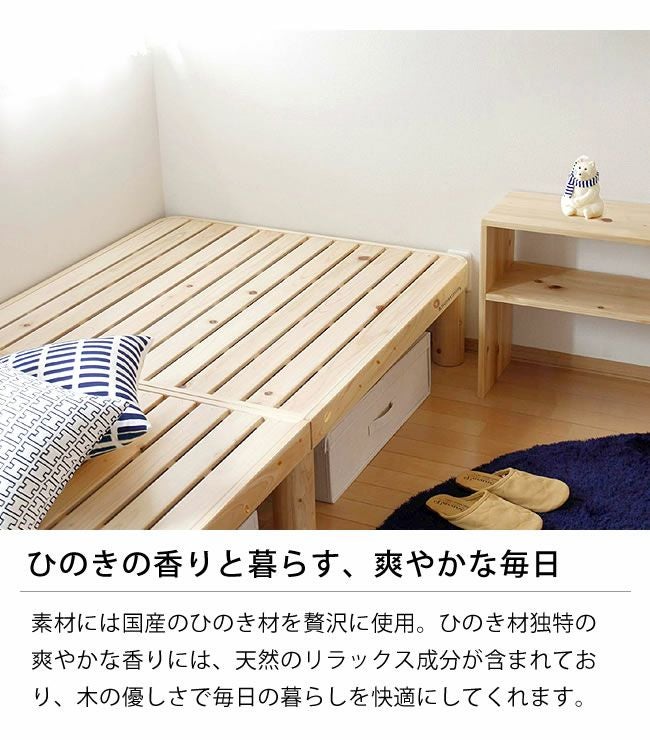 商品の特長:4分割で組み替え自由に使える、ひのき材のすのこベッド