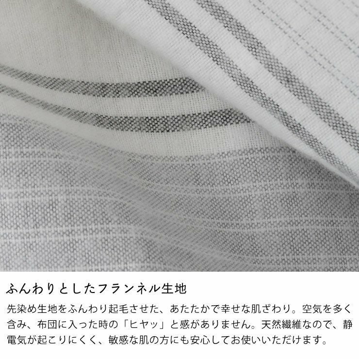 綿100%。先染めシンプルボーダーのあったかフランネル。シングルサイズの掛け布団用のカバーです。