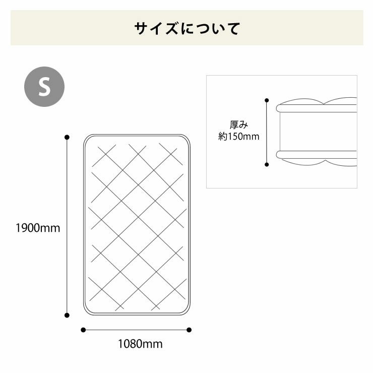 こちらのセット用敷き布団は、長さ190cm×幅108cmのサイズとなっています。少し短めの長さとなっておりますが、幅は一般的なシングルサイズの敷き布団とほぼ同じサイズです。