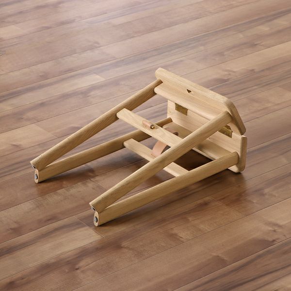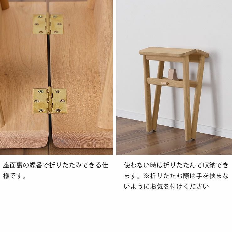座面裏の蝶番で折りたたみできる仕様です。
