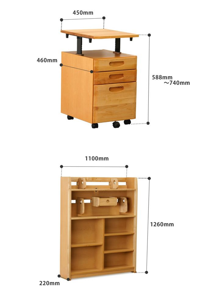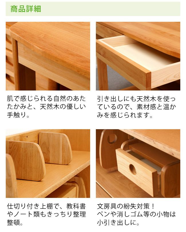 | 木のぬくもりと充実した機能の学習机 | 白くてカワイイ♪エコ塗装学習机3点セット | |