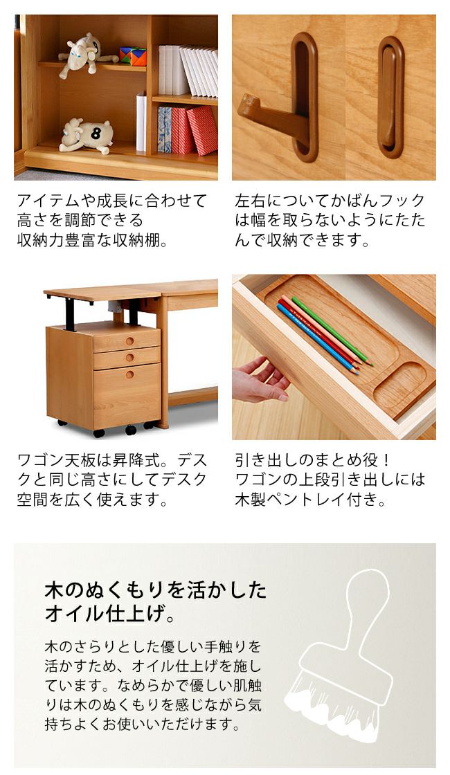 お子さまがたくさんの幸せな時間を過ごせるように願いを込めた学習デスクです。