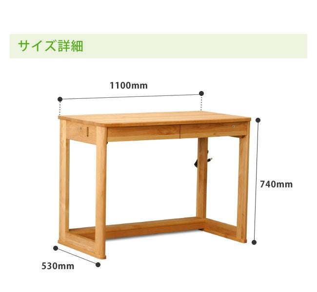 シンプルな斜め脚が特徴のアルダー材学習机   コンパクトでリビングでも使える学習机