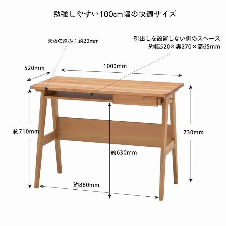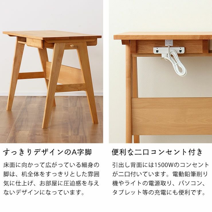 天然木のぬくもりを感じられるナチュラル感と、国産ならではの丁寧な作りが魅力のスタイリッシュなアルダー材のデスクです。デスク奥行を52cmと抑えており、子ども部屋にはもちろん、リビングなどにも場所をとらずコンパクトに設置できるのが魅力。デスク小物の整理に便利な引き出し付です。