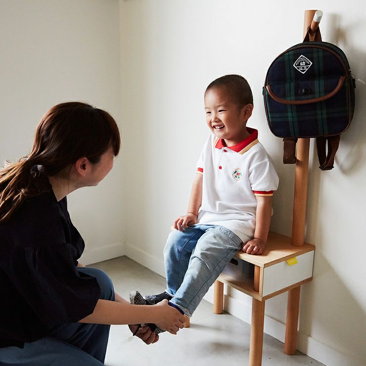 子ども部屋はもちろんですが、強度はしっかりと保たれているからスツールとしても使用可能。お子さまを座らせてあげれば、靴も履かせやすく、上着や帽子などを掛けておけば、朝の準備はスムーズです。