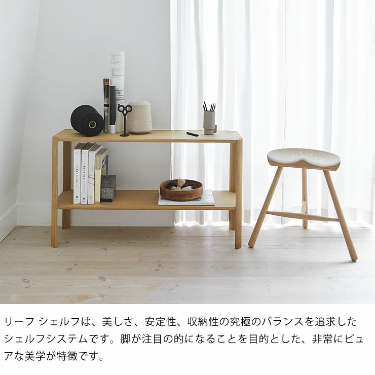 すっきりしたデザインでたっぷり収納できるブックシェルフ明るくぬくもりのあるアルダー無垢材をたっぷり使い、ナチュラルで自然な魅力が満載のブックシェルフです。