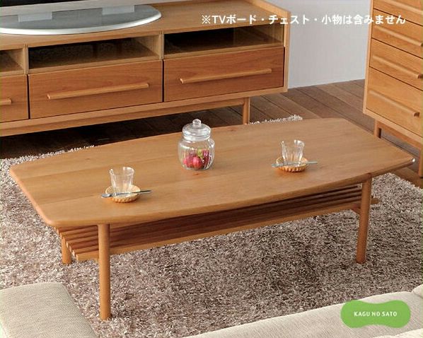 木の質感、風合いを活かしてナチュラルに仕上げた人と環境に優しい素材のリビングテーブルです。