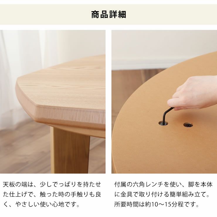 日本の職人が仕上げており、角の仕上がりや脚裏など細部にまで丁寧な仕上げに拘った作りのテーブルです。