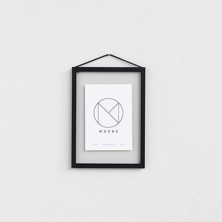 MOEBE FRAME(ムーベ フレーム)は、普遍の形ともいえる額縁をこれまでにない観点から捉え直しデザインされたアイテムです。2枚のアクリルガラスの4辺をオークまたはアルミニウムの枠材で囲み、ラバーバンド1本で固定するという画期的な構造です。