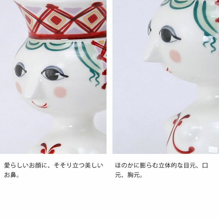 エヴァシリーズで人気のデザイナー、ビヨン・ヴィンブラッドは、キリスト降誕の物語に登場する人物をモチーフにした作品を作っており、過去のアーカイブにインスピレーションを受けて作成されたのがこのクリスマスシリーズです。モチーフになったのはクリスマスシーズンが始まる頃の北欧のお祭りでも知られる聖ルチア。白磁にレッドやピンク、ゴールドで描かれた可愛い絵柄でクリスマスの雰囲気を盛り上げてくれます。直径約2cmのキャンドルを立てることができます。クリスマスはもちろん、オールシーズン飾れるキャンドルホルダーです。同じシリーズで集めて飾っても素敵ですね。当店限定のろうそくプレゼント企画実施中です。