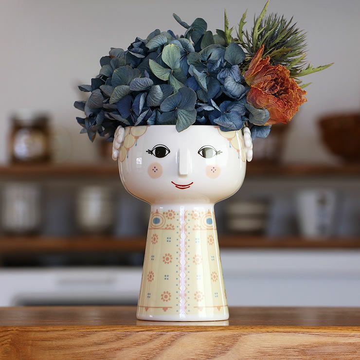 優しい笑みを浮かべた独特の雰囲気の女性。美しいその頭部に花がくるので、様々な雰囲気を楽しめます。花器として、オブジェとしてもおすすめです。