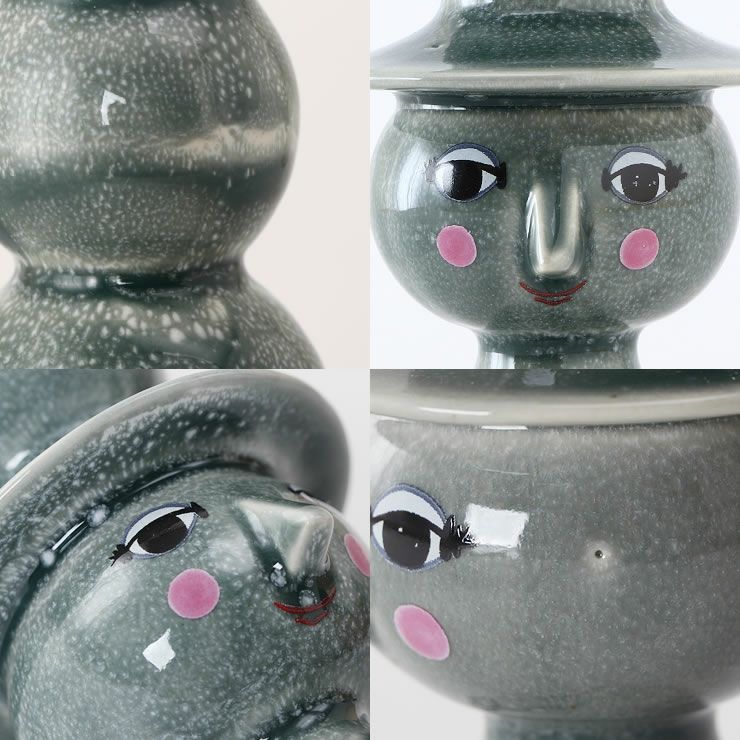 アーモンド型の目や三角の鼻をもつ女性の顔は、デザイナーのビヨン・ヴィンブラッドの最も有名なシンボルの一つ。「The seasos」は80年代にビヨン・ヴィンブラッドにより制作されたフィギュアシリーズをベースにビヨンがかつて表現してきた季節を取り入れ、新たな解釈としてデザインされました。「The seasons」の第1弾のSPRINGは、ぽこぽこ膨らんだ背の高い帽子姿がかわいい一輪挿し。小さな花瓶として、またキャンドルホルダーとしてもお楽しみいただけます。