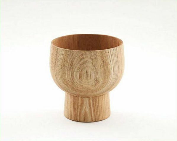 日本の器の伝統的なディティールである高台の付いた、木のタンブラーです。器を包む手のぬくもりを孫の代まで受け継いでほしいとデザインされたもので、漆器で有名な長野県木曽の酒井産業と、注目の新進気鋭デザイナーである角田陽太氏とのコラボレーションにより製作されました。