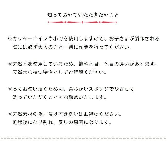 | その他 | ・生産国 日本 ・ブランド URBAN Ole Eco Park(アーバン オーレ エコパーク) ・サンドペーパー付き ・仕上げ用みつろう、ウエス付き ・必要道具 小刀またはカッターナイフ ・こちらの商品は【組立品】です 【ラッピング可能】 詳しくはこちら 【熨斗不可】 【日時指定区分/小型】 |