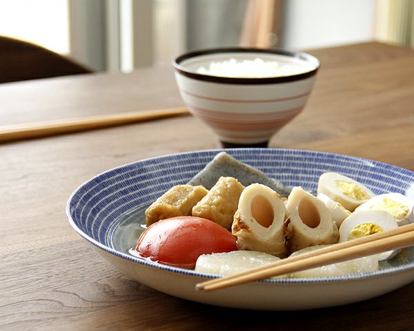 1984年から変わらず長く愛されているお皿。手書き風ブルーの斜めラインが重なり合う爽やかなデザインが人気のアイテム。前菜や焼き魚など和洋を問わず盛りつけできて、使い勝手の良い長皿です。