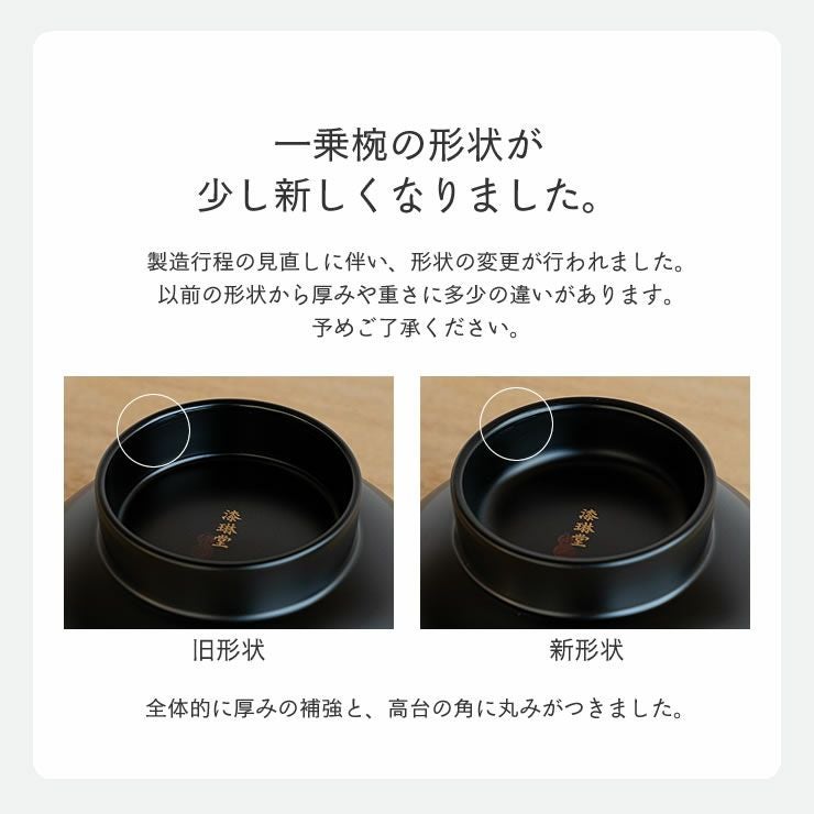 伝統的な形状を継承する「一乗椀」。汁椀サイズの一般的なお椀型で、手に馴染みやすい形状です。