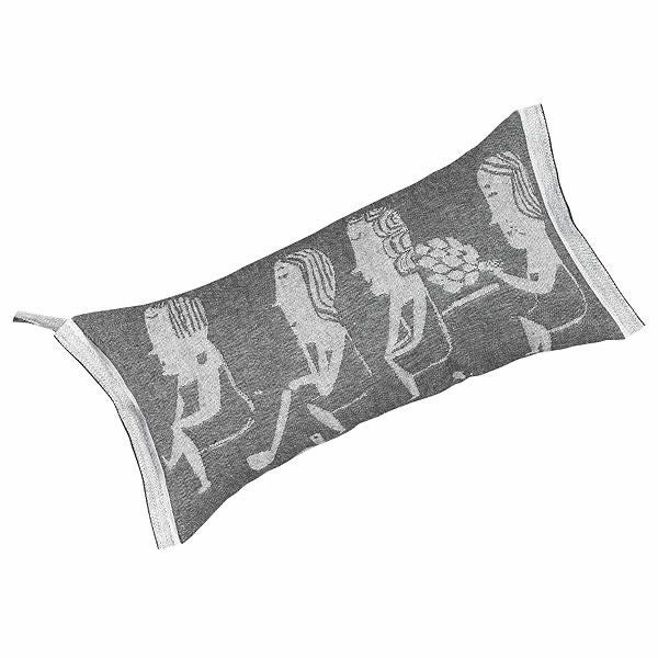 サウナを楽しむ人達の絵が織られたテキスタイル サウナを楽しむ人達の絵が織られたテキスタイルのサウナピロー