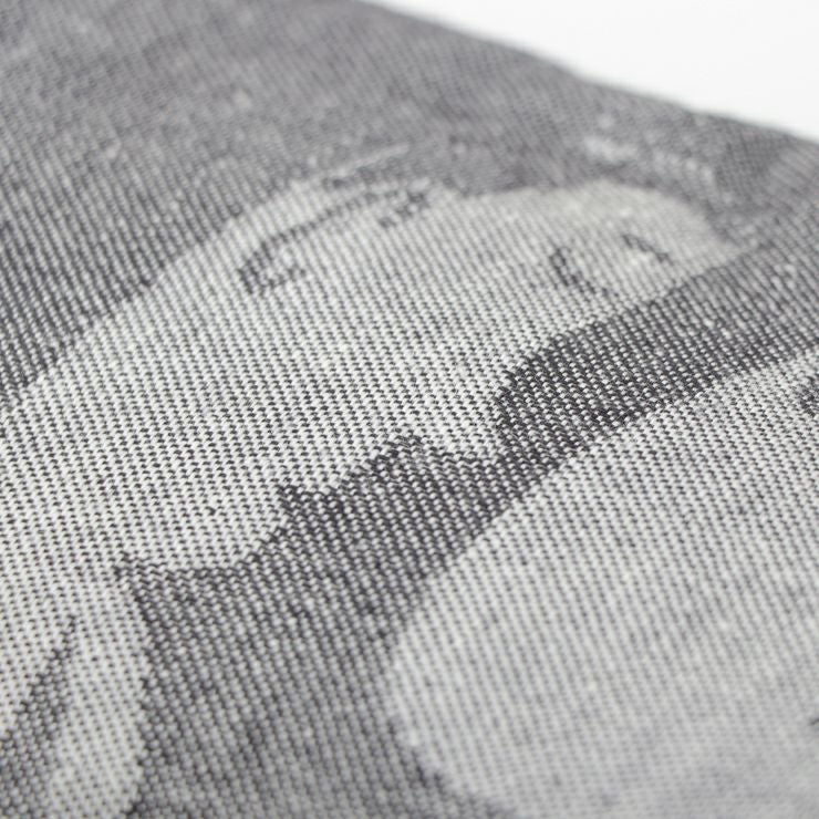 サウナを楽しむ人達の絵が織られたテキスタイルのサウナピロー