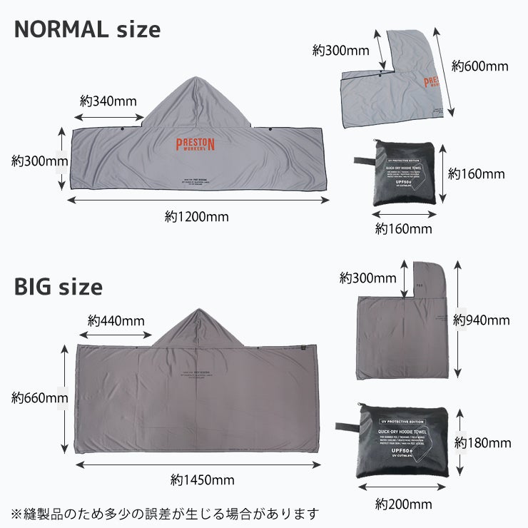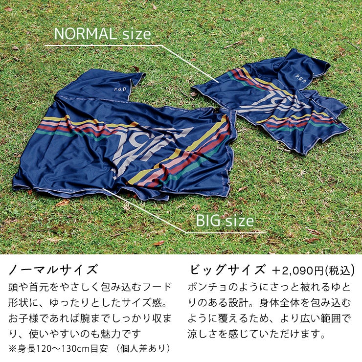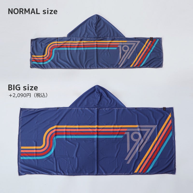 サイズは頭や首元をやさしく覆うフード形状に加え、ゆったりとしたノーマルサイズと、ポンチョのように被れるビッグサイズ(+2,090円)からお選びいただけます。