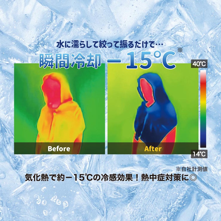 水に濡らして、ひんやり。最大約-15℃の冷感体験
