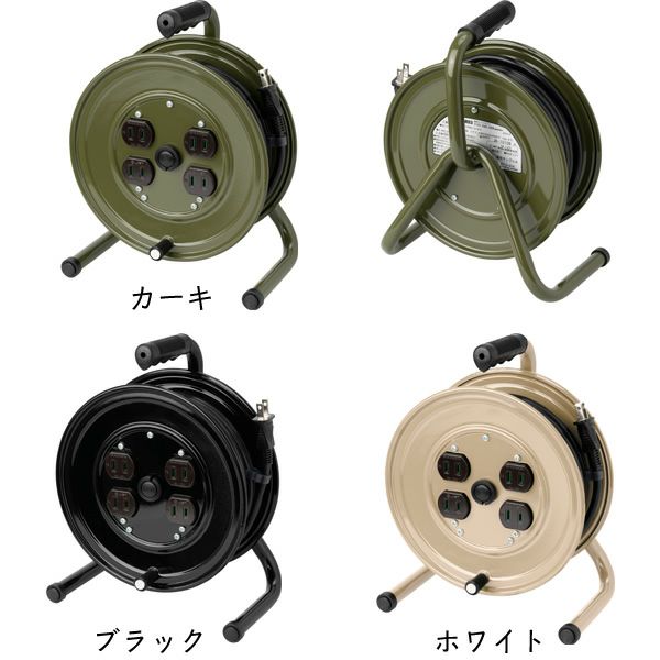 コンセントが近くに無いシチュエーションでも持ち運びが簡単に出来る屋内用のコードリールです。電源が多く必要なデスク近くに置くのもミリタリーカラーのインパクトがありおススメです。コンパクトなサイズでコードが簡単に巻き取れるので、使わない時はコードを巻き取ってすっきりと収納出来るのも魅力の一つです。