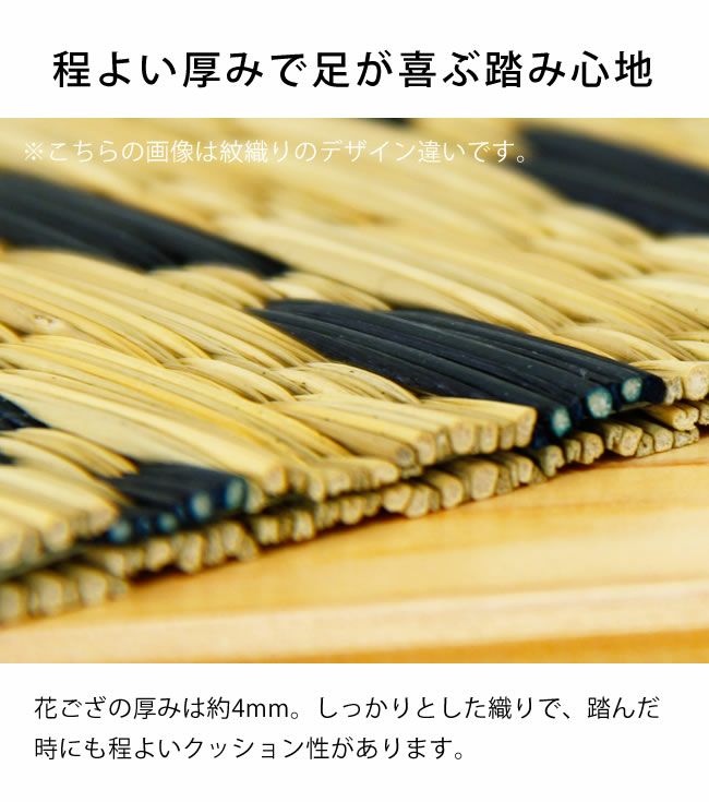 | 材質 | 国産い草100% 紋織 縁:綿100% 裏面:ポリエステル不織布(フェルト) |