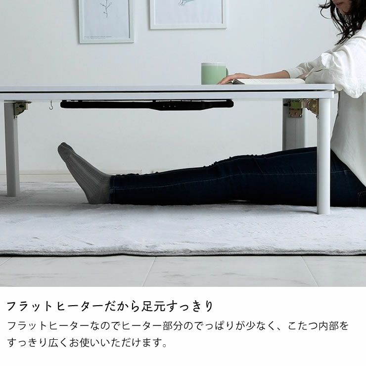 フラットヒーターなのでヒーター部分のでっぱりが少なく、こたつ内部をすっきり広くお使いいただけます。