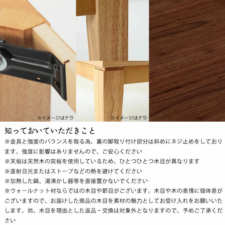 ※ウォールナット材ならではの木目や節目がございます。木目や木の表情に個体差がございますので、お届けした商品の木目を素材の魅力としてお受け入れをお願いいたします。尚、木目を理由とした返品・交換は対象外となりますので、予めご了承ください