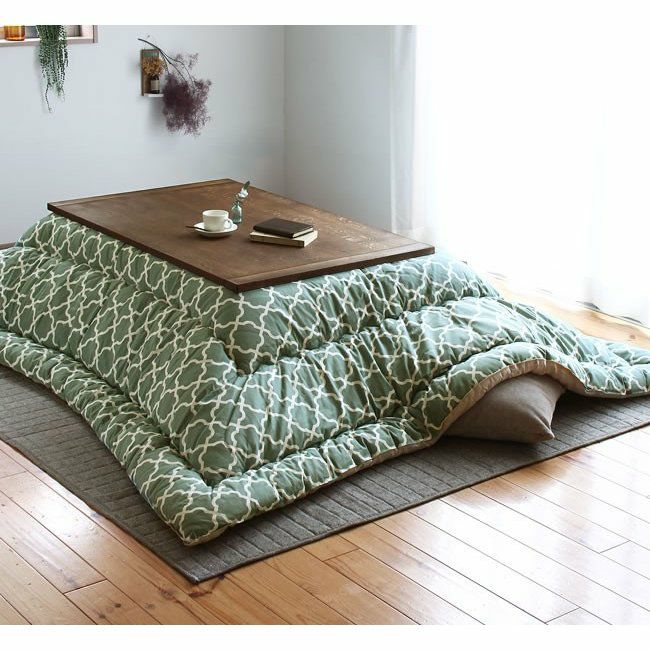ナチュラル色のこたつにも、ブラウン色のこたつにもあわせやすい、爽やかさを感じる色合い。当店イチオシのカラーです!