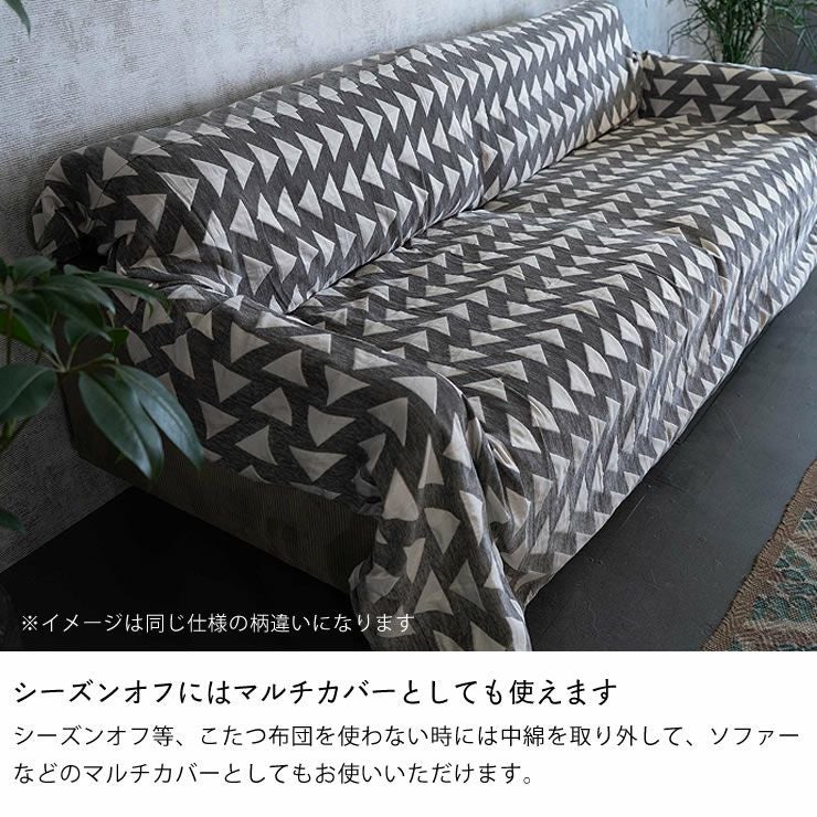 シーズンオフ等、こたつ布団を使わない時には中綿を取り外して、ソファーなどのマルチカバーとしてもお使いいただけます。