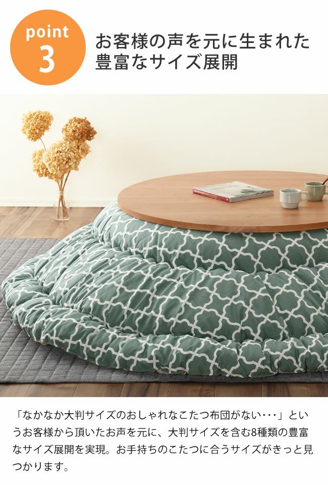 こたつ布団 コタツ布団 国産 良品 おしゃれ オシャレ 節電 エコ 節約 丸 円形 日本 日本製 冬物 和室 洋室 リビング 和モダン ジャパニーズ 布団 ふとん 省エネ コットン 綿 ふっくら 厚掛け オリジナル グリーン ブルー アイボリー イエロー 北欧 北欧テイスト 北欧風 モロッカン マラケシュ モロッカンインテリア【ftan_all】 【ftan_atsu】 【ken_all】 【kf_org01】 【original_046】カテゴリTOP > こたつ・こたつ布団 > こたつ掛け布団・カバー