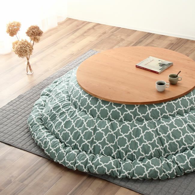 ナチュラル色のこたつにも、ブラウン色のこたつにもあわせやすい、爽やかさを感じる色合い。当店イチオシのカラーです!