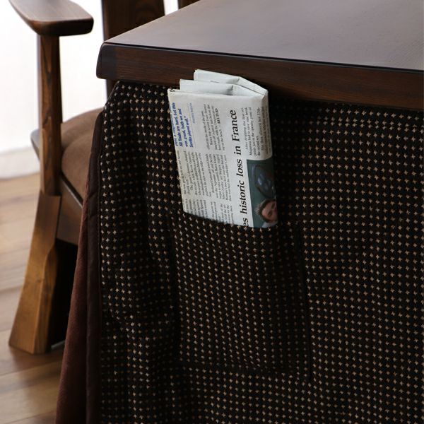 こたつ布団の側面には、こたつのコントローラーや新聞、小物等を収納に便利なポケットが付いています。