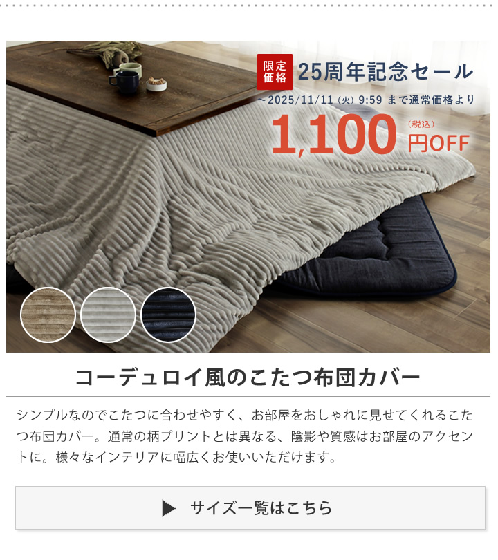 コーデュロイ調の立体感がおしゃれなこたつ布団カバー