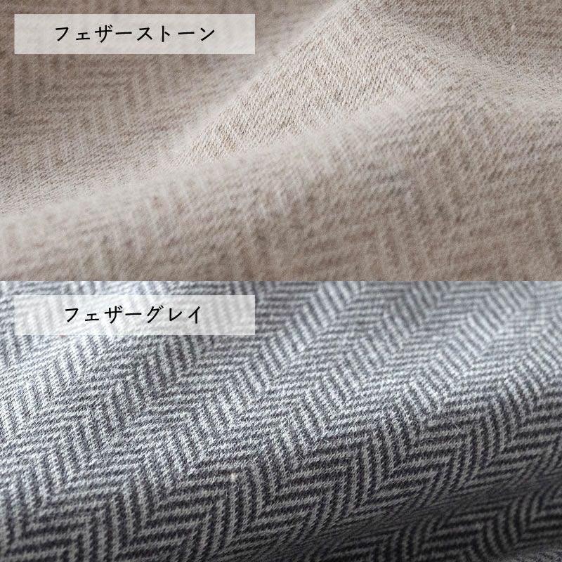 綿100%の杢糸と無地糸をジャガード編み機でヘリンボーンに編み上げたニット素材のこたつ布団カバー。程よい厚みとやわらかさに加え、吸汗性・ストレッチ性に優れた一年中快適な素材です。