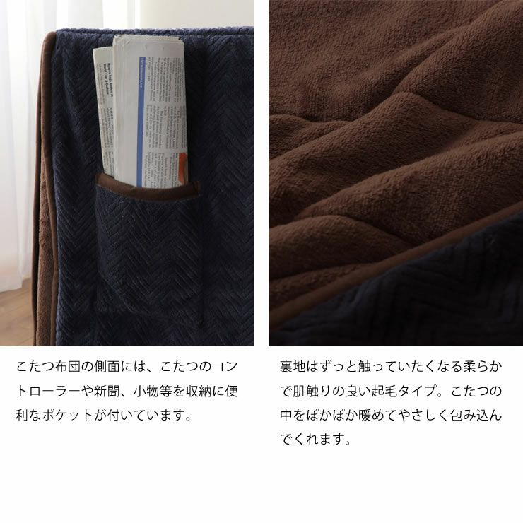| ・「こたつ布団の選び方と種類」 生地や柄・カラー等、種類豊富な“こたつ布団”用途に応じたこたつ布団の選び方をご紹介いたします! |