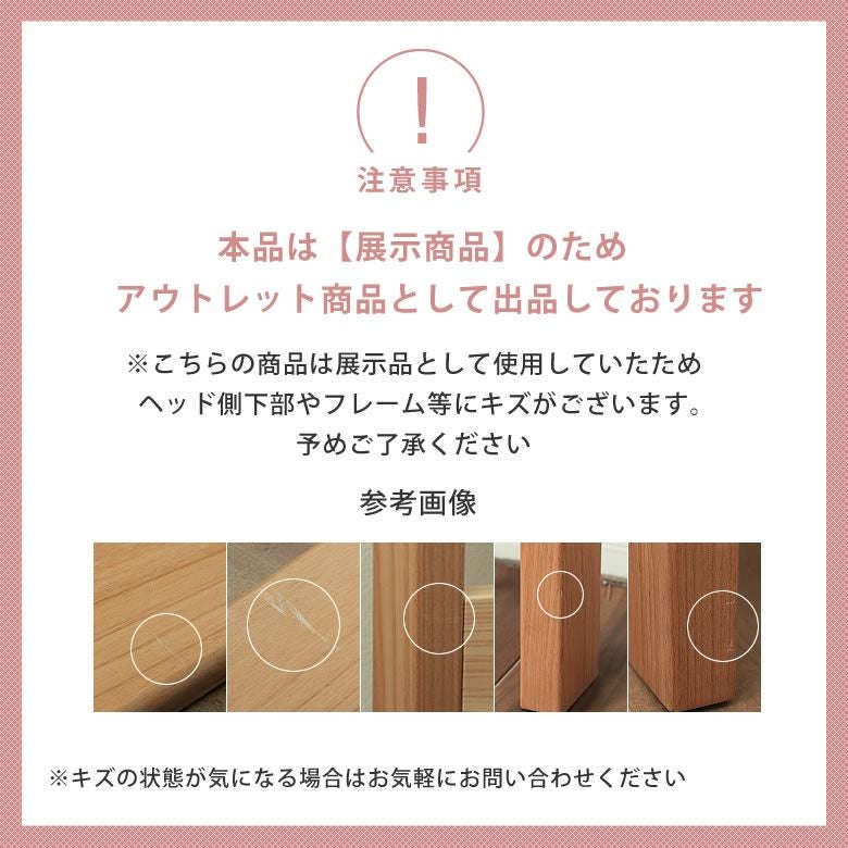 | 材質 | へッドボード:アルダー無垢材 ※一部は桧無垢材を使用 フットボード:アルダー無垢材 ※脚はラバーウッド材を使用 サイドフレーム:アルダー突板 すのこ:桐無垢材 |
