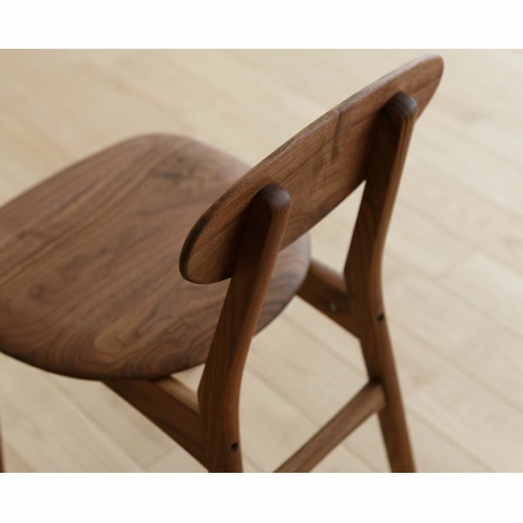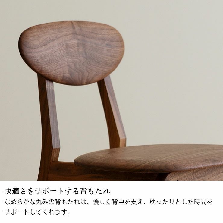 なめらかな丸みの背もたれは、優しく背中を支え、ゆったりとした時間をサポートしてくれます。座面は足に沿う柔らかいカーブを描いており、優しい座り心地を感じられます。