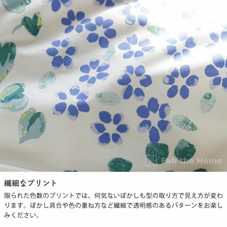 綿100%の糸を使用し、200本ブロード(1インチの間に200本の糸を使って織った平織り生地)にプリントしています。滑らかな中に張りのある独特の触り心地が魅力。光沢があり織り目が密なので、丈夫さも兼ね備えています。