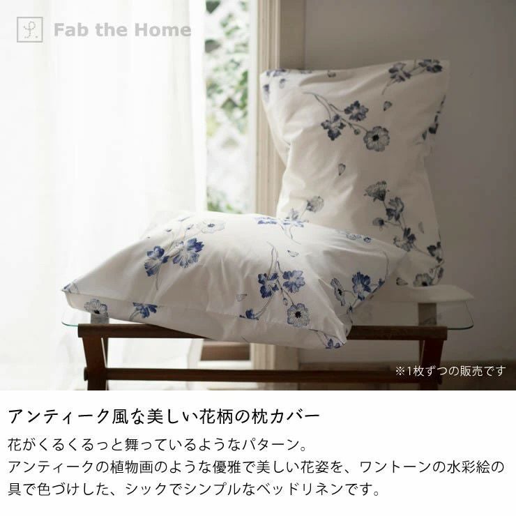 アンティークの植物画のような優雅で美しい花姿を、ワントーンの水彩絵の具で色づけした、シックでシンプルなベッドリネンです。
