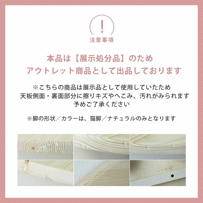 パイン材のやわらかく節のある自然体な木目はナチュラルな美しさがあります。一つ一つがオンリーワン。同じ表情の物は二度と出来ません。素材を生かした、世界に一つだけの愛着の持てるちゃぶ台です。