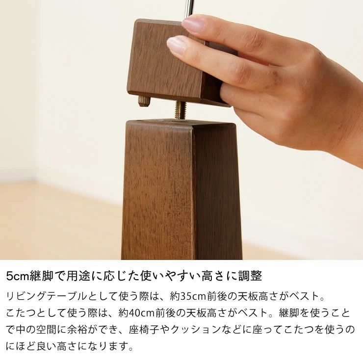 デザイン性に優れているので、こたつの季節だけではなく一年中通してお使い頂けます。(こたつ使用時には高さを上げる継脚付き)画像は継脚が付いた状態です。