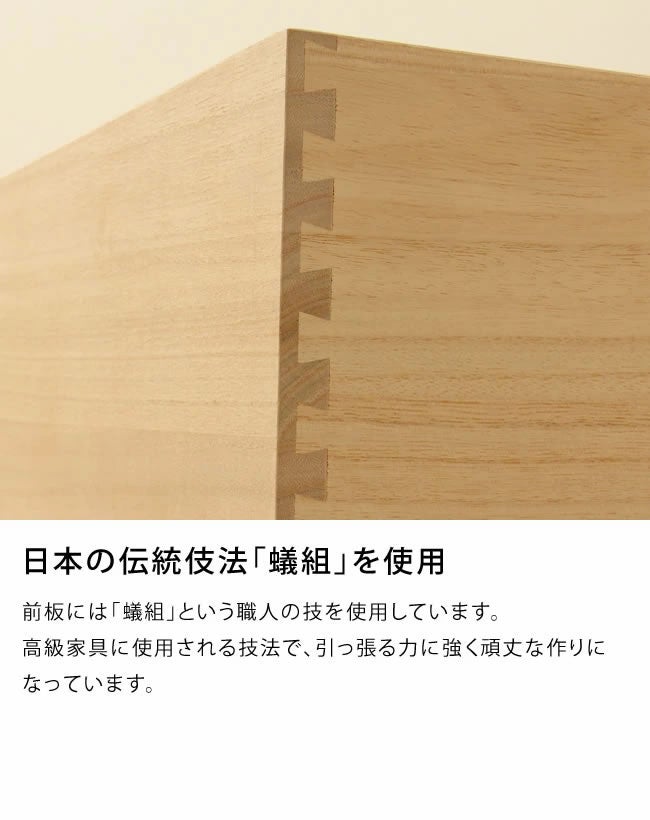前板には「蟻組」という職人の技を採用しています。高級家具に用いられる技法で、引っ張る力に強く頑丈な作りになっています。