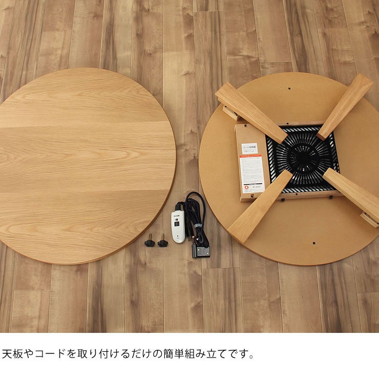 ナラ材、ウォールナット材を使用した天然木の温かみを感じるナチュラルなデザインのこたつ。優しい丸みで、ほっと落ち着けてゆったり和めるこたつ空間を演出してくれます。